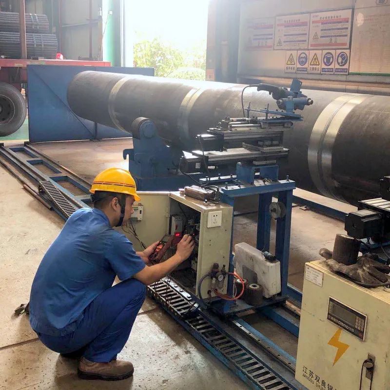 類似設備技術改造,吳昊參與完成的項目數不勝數,比如雙絲埋弧焊焊接電器改造、所有埋弧焊機無線遙控改造、組隊滾輪架拼裝焊接改造、水管鍋筒焊接機器打磨、模式壁自動焊的電焊機改造等項目。就在剛剛他又和機修師傅們一起完成一項火管車間管頭打磨機自動化的改造,原來四五個人花費幾天才能完成的人工打磨,現在只要一人調運上管,按下啟動全部自動打磨好,省時省力節約成本。
