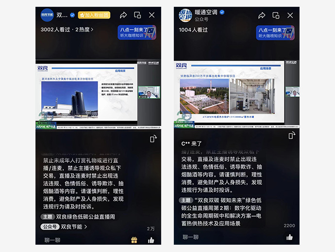 本場(chǎng)主題為《數(shù)字化驅(qū)動(dòng)的全生命周期碳中和解決方案——電蓄熱供熱技術(shù)及應(yīng)用場(chǎng)景》的“綠色低碳公益直播”累計(jì)觀看人數(shù)超4000人次,點(diǎn)贊數(shù)超20000次。未來(lái),我們將繼續(xù)踐行碳中和使命,賦能低碳社會(huì),用科技改變世界,以“人類命運(yùn)共同體”的視角創(chuàng)造人類共同利益和價(jià)值。
